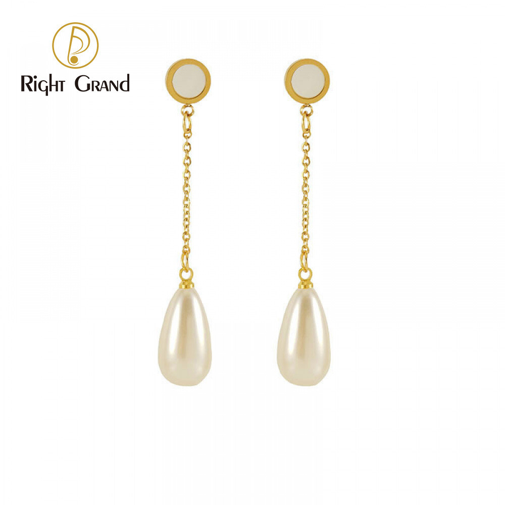 Right Grand Luxury Fashion Elegant Women Jewelry Stainless Steel 18K Gold Plated Long Shell Pearl Drop Earring